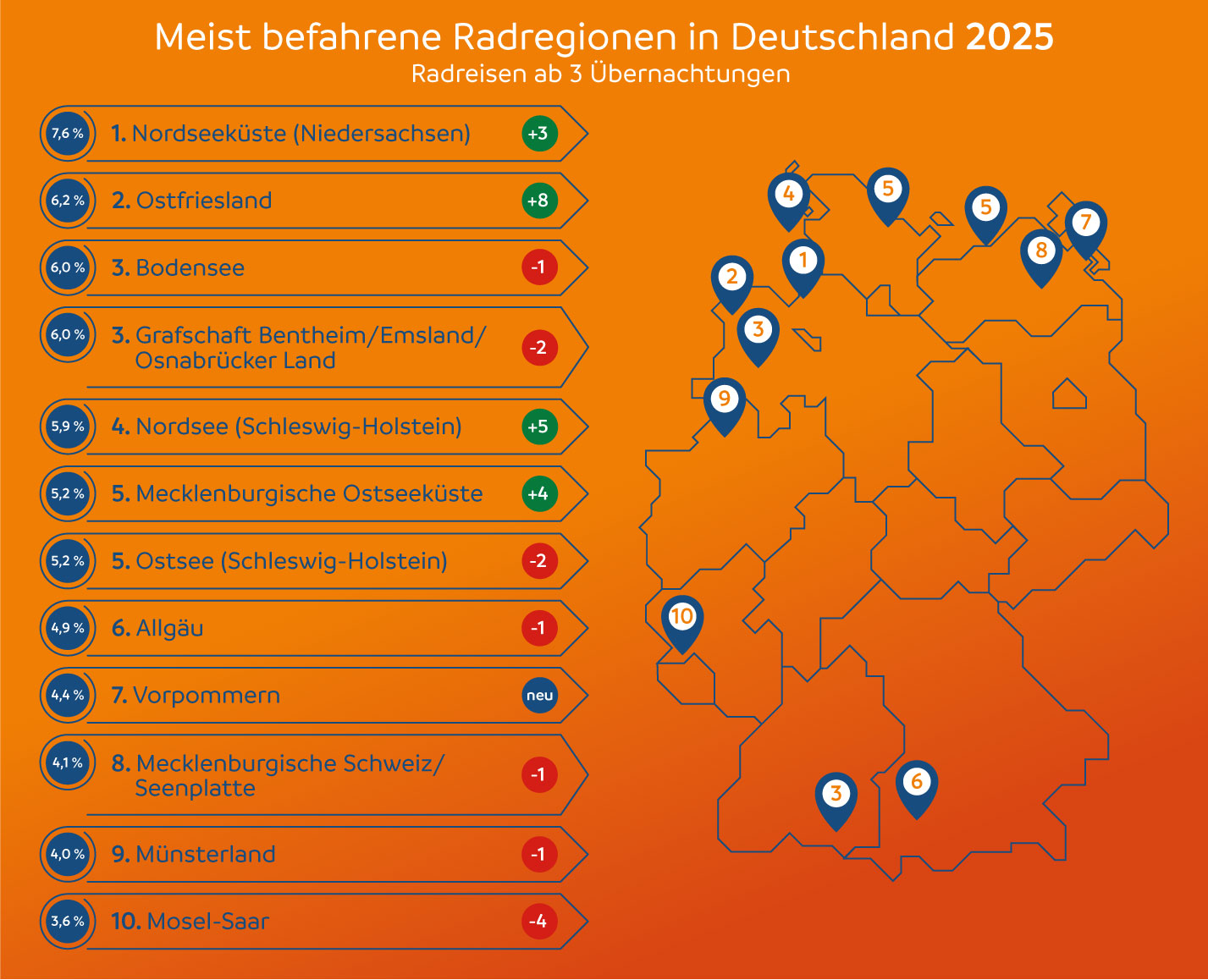 Die am meist befahrenen Radregionen 2025